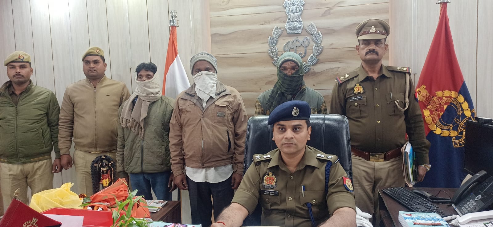 पुलिस अधीक्षक बलरामपुर विकास कुमार द्वारा थाना गैड़ास बुजुर्ग क्षेत्रांतर्गत हुई जमीन बैनामा धोखाधड़ी की घटना में गंभीर धाराओं में अभियोग पंजीकृत कर अभियुक्तों की शीघ्र गिरफ्तारी हेतु दिए गए निर्देश के क्रम में अपर पुलिस अधीक्षक विशाल पाण्डेय व क्षेत्राधिकारी उतरौला राघवेन्द्र सिंह के पर्यवेक्षण में तथा थानाध्यक्ष राजीव कुमार मिश्र थाना गैण्डास बुजुर्ग के कुशल नेतृत्व में आज दिनांक 17.12.2025 को थाना गैण्डास बुजुर्ग पुलिस टीम द्वारा मुखबिर खास की सूचना पर थाना स्थानीय पर पंजीकृत मु0अ0सं0 115/2025 धारा 318(4)/338/336(3)/340(2)/352/351(3)/61(1) बी0एन0एस0 के से संबंधित नामित अभियुक्तों 1.सियाराम पुत्र भग्गन निवासी ग्राम नन्दौरी थाना गैण्डास बुजुर्ग जनपद बलरामपुर 2.मुन्नूलाल पुत्र कुट्टुर निवासीगण ग्राम नन्दौरी थाना गैण्डास बुजुर्ग जनपद बलरामपुर 3.शब्बीर अहमद पुत्र अब्दुल शकुर निवासी ग्राम मझांरी तप्पाबांक थाना कोतवाली उतरौला जनपद बलरामपुर को निकट शराब भट्ठी मोड से पहले बहद ग्राम हासिमपारा थाना गैण्डास बुजुर्ग के पास से गिरफ्तार किया गया। अभियुक्तगण उपरोक्त के विरुद्ध आवश्यक वैधानिक कार्यवाही कर मा0 न्यायालय रवाना किया जा रहा है ।