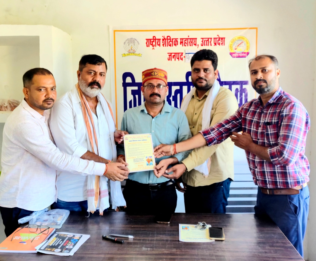 संघ जिलाध्यक्ष विकास कांत पांडेय ने सदर तहसील स्थित कैंप कार्यालय पर बैठक करते हुए हमारा विद्यालय हमारा स्वाभिमान के संकल्प को साझा किया है। उन्होंने बैठक में कहा कि राष्ट्रीय शैक्षिक महासंघ विद्यार्थी एवं शिक्षक के बीच अनुशासन को कायम करेगा। इसके तहत महासंघ ने 5 बिंदुओं का संकल्प तैयार किया है जो विद्यालय में जाकर शिक्षक एवं विद्यार्थी के बीच साझा करेंगे। यह अभियान 1 सितंबर से विद्यालयों में राष्ट्रीय शैक्षिक महासंघ चलाएगा। हमारा विद्यालय हमारा स्वाभिमान संकल्प की सफलता के लिए महासंघ ने वरिष्ठ पत्रकार डॉ अविनाश पाण्डेय के सहयोग लेने के लिए संकल्प पत्र से सम्मानित किया है। उन्होंने कहा कि राष्ट्रीय शैक्षिक महासंघ जिला इकाई की पहल विद्यार्थी एवं गुरु के बीच के रिश्तों को मजबूत करेगा संस्कारवान शिक्षा के साथ-साथ विद्यार्थियों के चरित्र निर्माण आप विकास एवं समाज सेवा में कारगर साबित होगा।इस अभियान के तहत मुख्य रूप से विद्यालय को स्वच्छ अनुशासित हरित एवं प्रेरणास्पद स्थान बनाने का संकल्प, विद्यालय की संपत्ति समय एवं संसाधनों को राष्ट्रगान मानते हुए उनका संरक्षण का संकल्प एवं उसका विवेक पूर्ण उपयोग, शिक्षा को केवल ज्ञान का माध्यम नहीं बल्कि चरित्र निर्माण आत्म विकास एवं समाज सेवा का साधन बनाने काउद्देश्य, विद्यालय में ऐसा वातावरण बनाने का संकल्प जहां कोई भेदभाव नहीं होगा सभी समान भाव से सीखने एवं सीखने के पद पर अग्रसर होंगे, विद्यालय को केवल एक संस्था नहीं बल्कि संस्कार सेवा एवं समर्पण का तीर्थ मानते हुए उसका गौरव बढ़ाने के लिए निरंतर प्रयास करने का संकल्प शामिलहै। बैठक में अन्य मुद्दे पर भी विस्तार से रणनीति बनाई गई है। इस दौरान वरिष्ठ उपाध्यक्ष राधा मोहन पांडे संजय त्रिपाठी कार्यक्रम संयोजक देवेंद्र नाथ तिवारी सहसंयोजक हरिकेश शुक्ला अरविंद शेखर मिश्रा ममता त्रिवेदी पीयूष मिश्रा जिला महामंत्री अंकुर प्रताप सिंह कोषाध्यक्ष मनमोहन सिंह संगठन मंत्री रवि ज्योति मिश्रा जिला मंत्री सुशील सिंह विनोद तिवारी विवेक सिंह वैभव ओझा जीवन ज्योति यादव अभ्युदय सिंह अखिलेश वर्मा प्रभा सिंह आदि शिक्षक एवं राष्ट्रीय शैक्षिक भाषण पदाधिकारी शामिल रहेहैं।