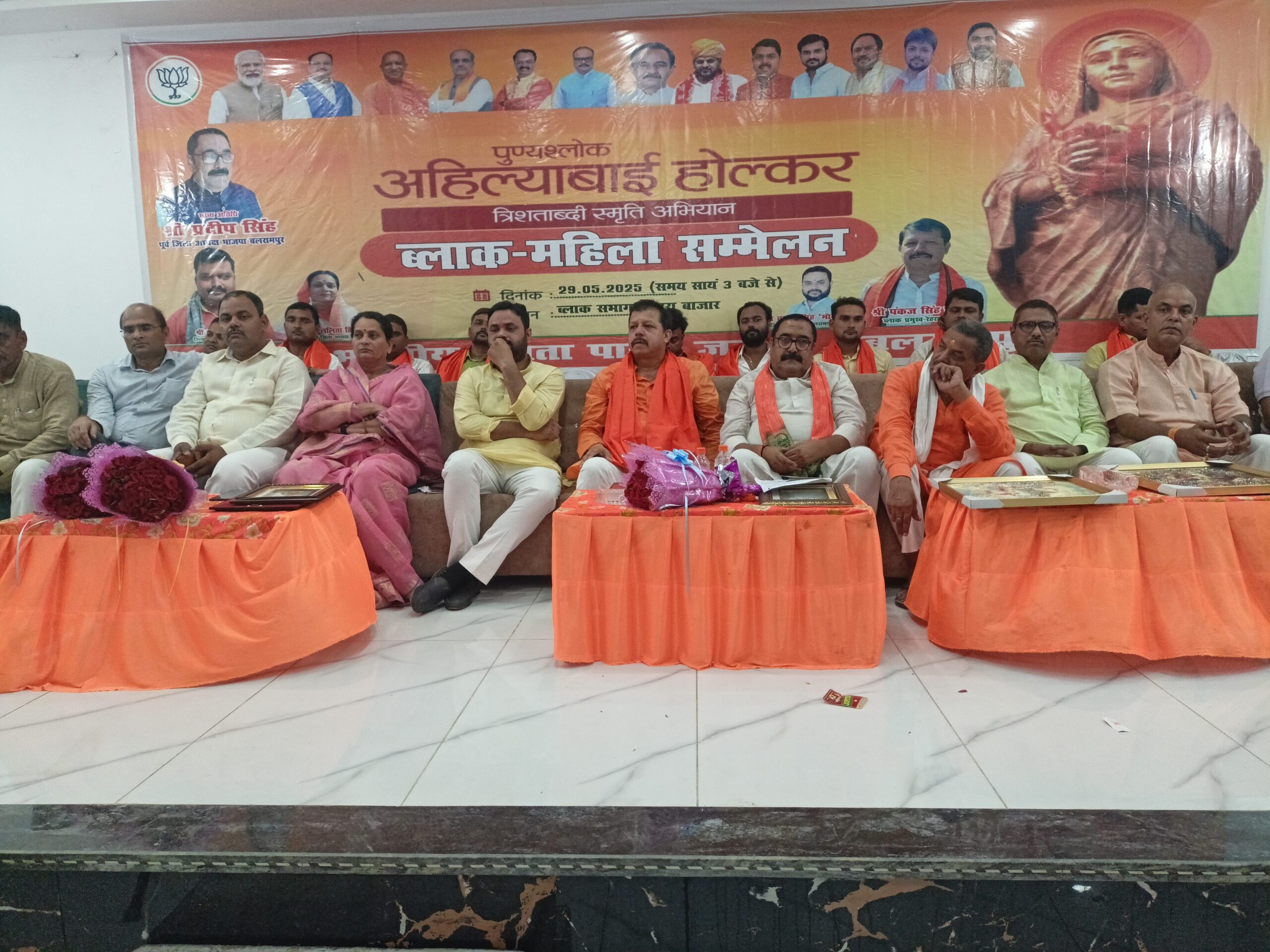 विकास खण्ड के रेहराबाजार में महारानी अहिल्या बाई होलकर त्रिशताब्दी स्मृति अभियान के तहत ब्लाक महिला सम्मेलन का आयोजन किया गया।कार्यक्रम के आयोजक ब्लाक प्रमुख पंकज सिंह चौहान ने बताया कि केन्द्र व प्रदेश सरकार बहन बेटियों के सशक्ती करण के लिए तमाम योजनाओ का संचालन कर रही है,सरकार द्वारा महिला शसक्ती करण कार्यक्रम महिला सुरक्षा योजना सहित कई योजनाएं संचालित की जा रही है।कार्यक्रम में प्रदीप सिंह पूर्व जिला अध्यक्ष भाजपा,वरूण सिंह मोनू जिला महामंत्री, ललिता तिवारी जिला अध्यक्ष महिला मोर्चा, राम करन मिश्रा , जिलेदार पांडे,भारत नरेश सिंह ,बिमलेन्द्र बिक्रम सिंह ,बीडीओ रेहराबाजार रजनीश शुक्ला,आदि ने अपने विचार रखे,इस अवसर पर तमाम महिलाएं/ बहने मौजूद रहीं।